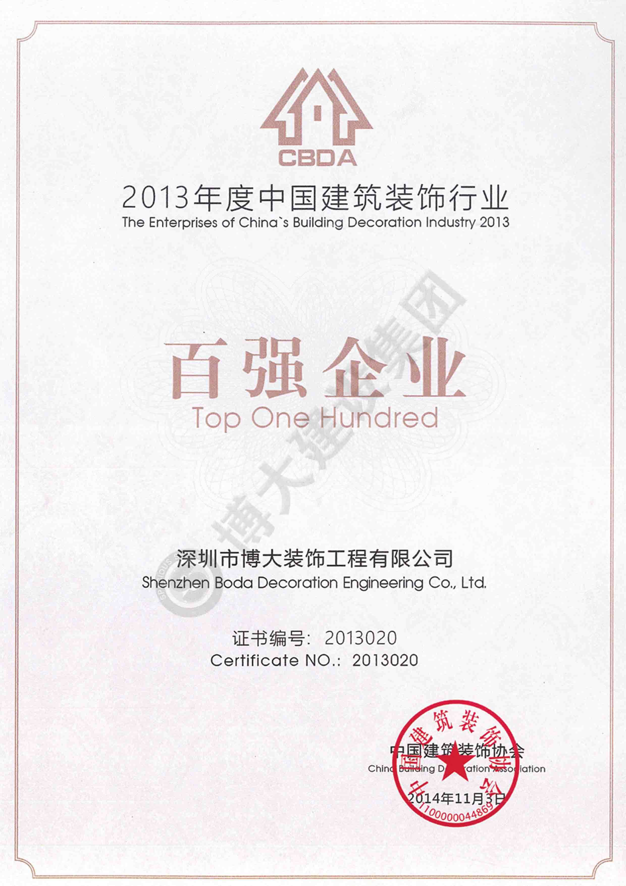2014年度中國建筑裝飾百強企業(yè)