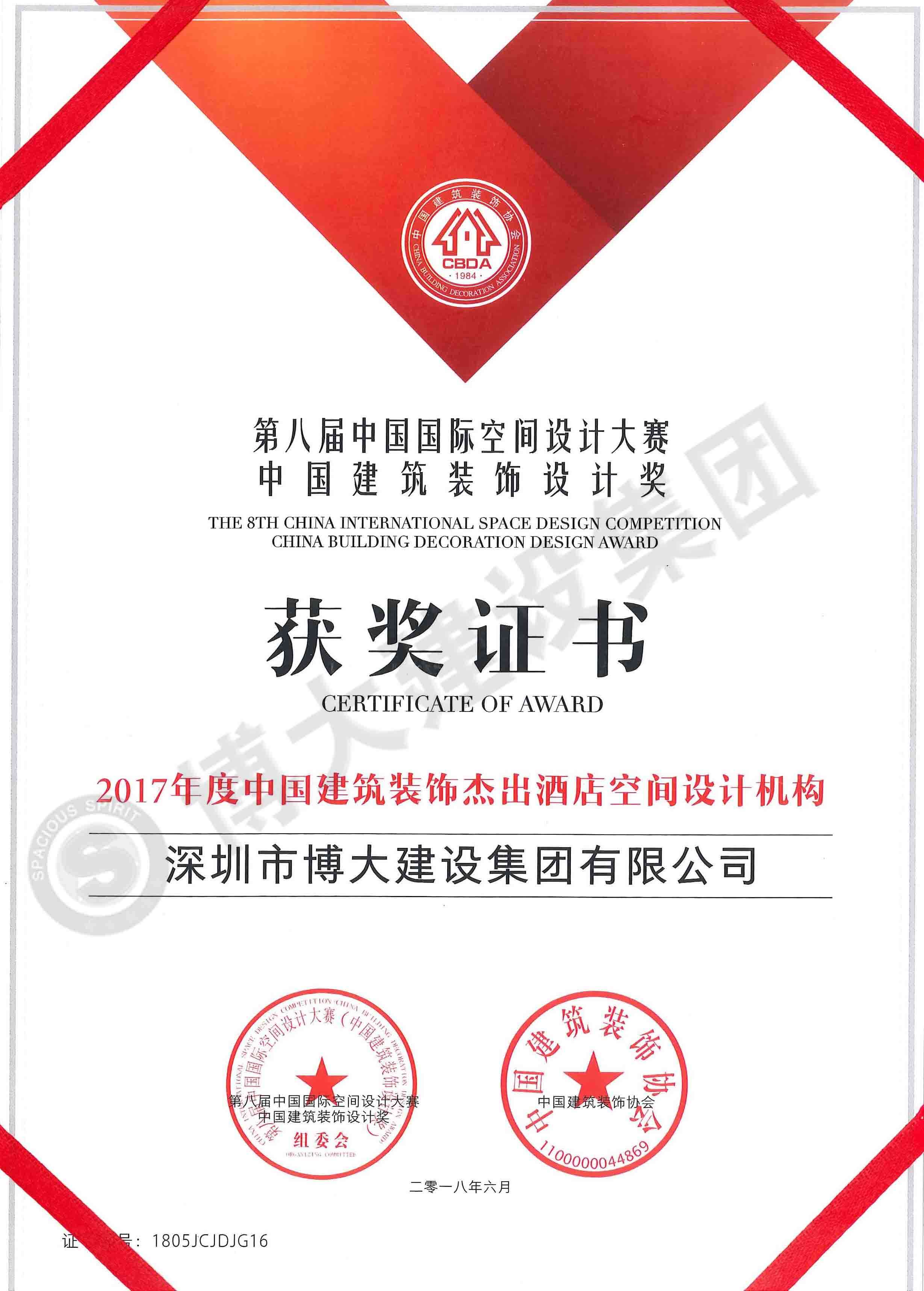 2017年度中國建筑裝飾杰出酒店空間設(shè)計獎