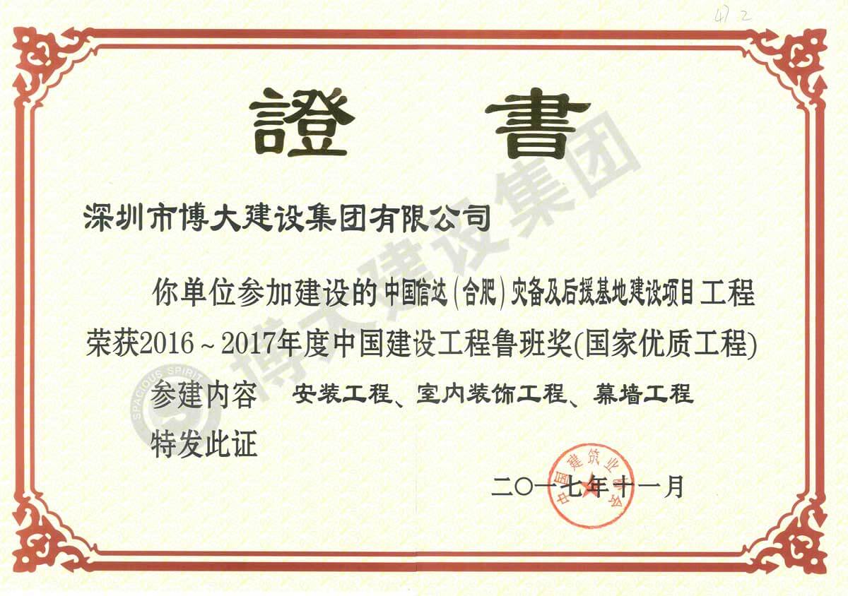 魯班獎(jiǎng)(中國信達(dá)合肥災(zāi)備及后援基地建設(shè)項(xiàng)目)