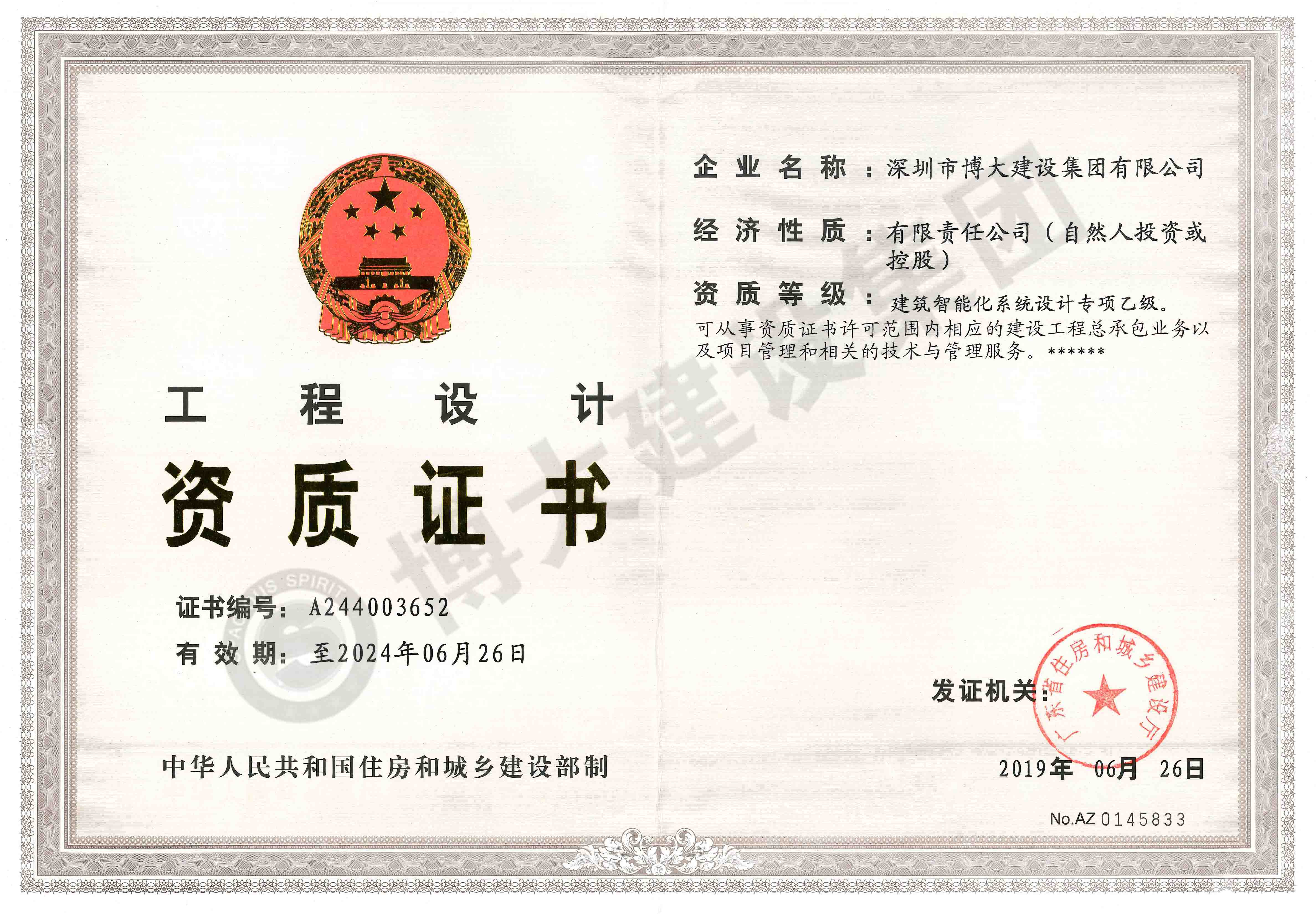 博大資質(zhì) | 喜獲建筑智能化系統(tǒng)設(shè)計(jì)專項(xiàng)乙級