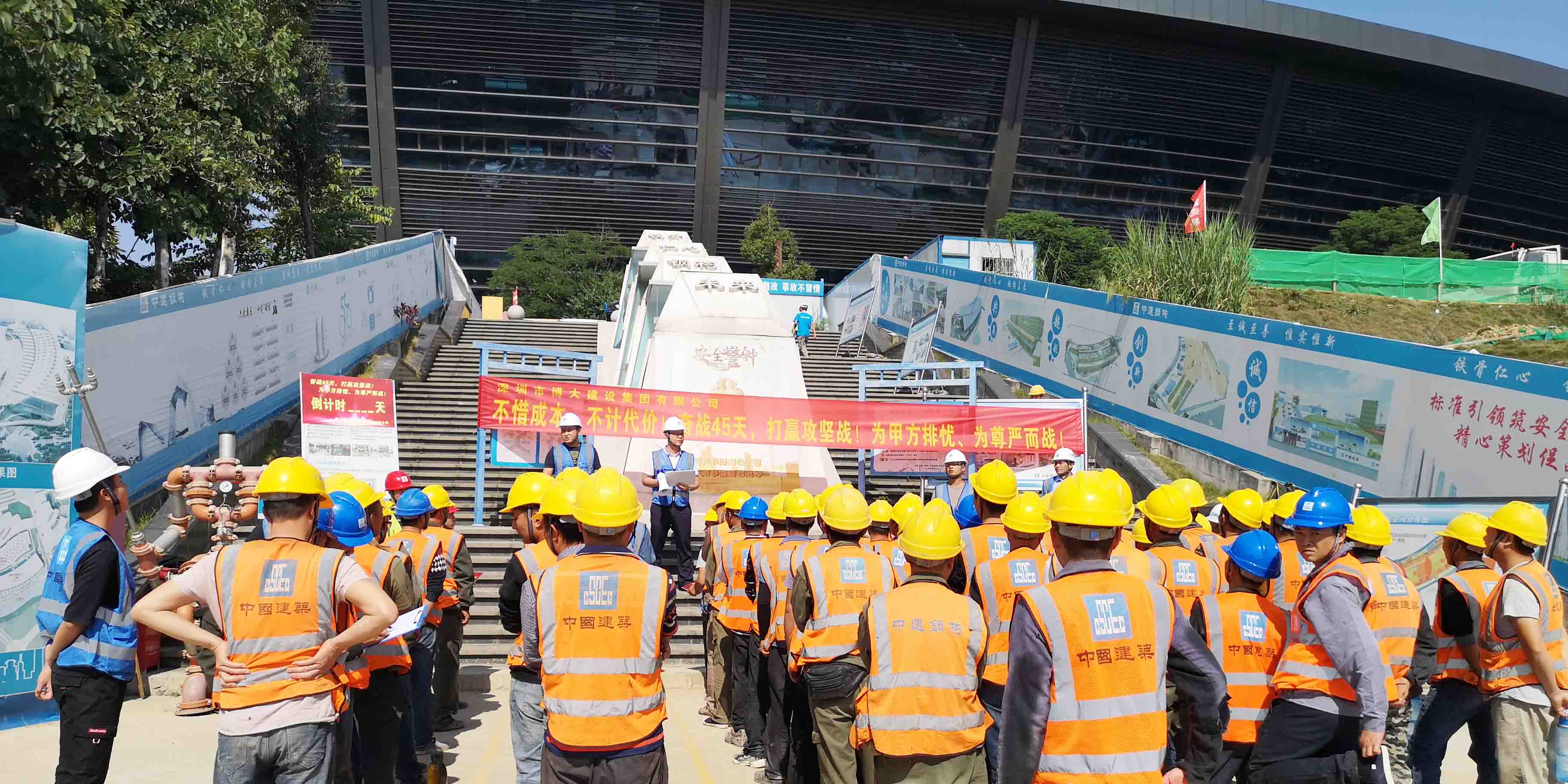 奮戰(zhàn)45天,博大鐵軍誓言打贏柳州會展項目攻堅戰(zhàn)——中國-東盟(柳州)工業(yè)品展示交易中心項目部舉行攻堅誓師大會
