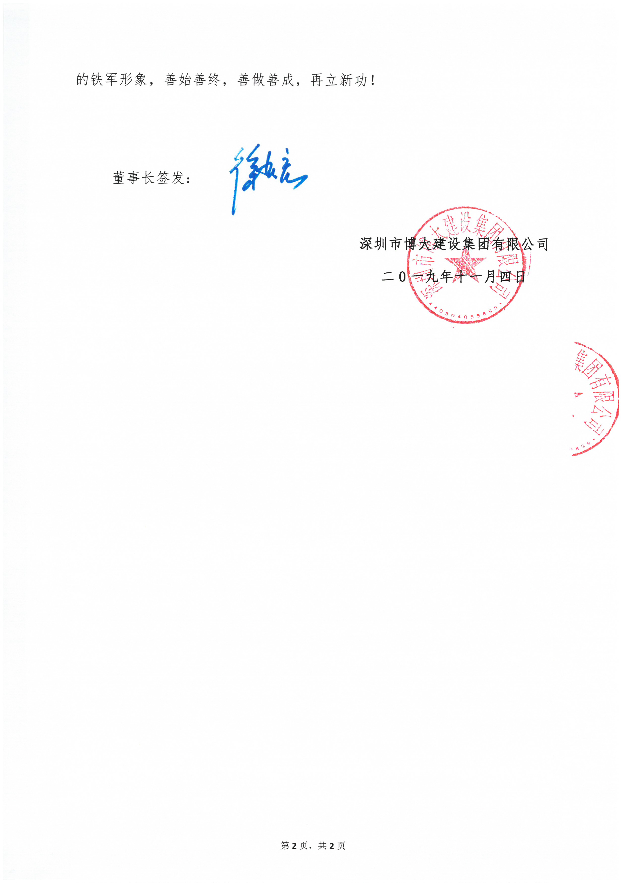 “我將以優(yōu)質(zhì)履約為先,以質(zhì)量安全為重;弘揚工匠精神,堅持最高標(biāo)準(zhǔn),堅定必勝信心;以最實最硬舉措、最拼最優(yōu)狀態(tài);全力投入、全力以赴;奮戰(zhàn)45天,打贏攻堅戰(zhàn),確保完成12.15節(jié)點目標(biāo)!”