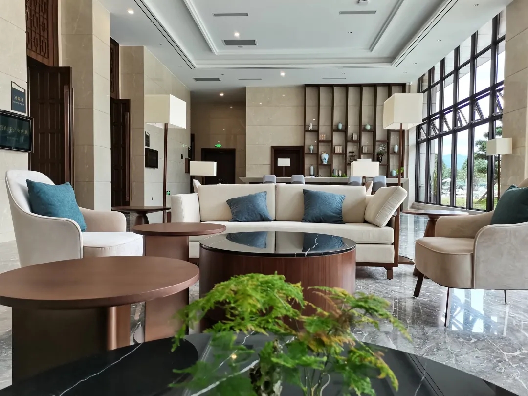 獨具民族特色的建筑風格、高雅的中式大堂、濃郁的中國山水氛圍,亭臺水榭,溪流潺潺,讓顧客產(chǎn)生“店在景中,人在畫中”的效果。漫步在這座五星級酒店內(nèi),更能感受到博大鐵軍的“匠心”。