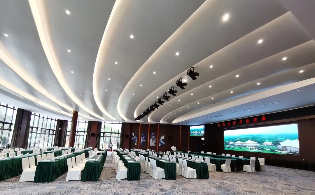 月亮山莊酒店位于“中國涼都”貴州省盤州市,是中國-東盟合作“妥樂論壇”的主辦場所,是貴州省重點建設(shè)工程,總投資金額約13億元。博大建設(shè)集團承建了該酒店項目的核心部分:接待大堂、報告廳,會議樓、宴會廳、全日制餐廳、特色餐廳、健身房、棋牌室等區(qū)域,合計建筑面積1.66萬余平方米。