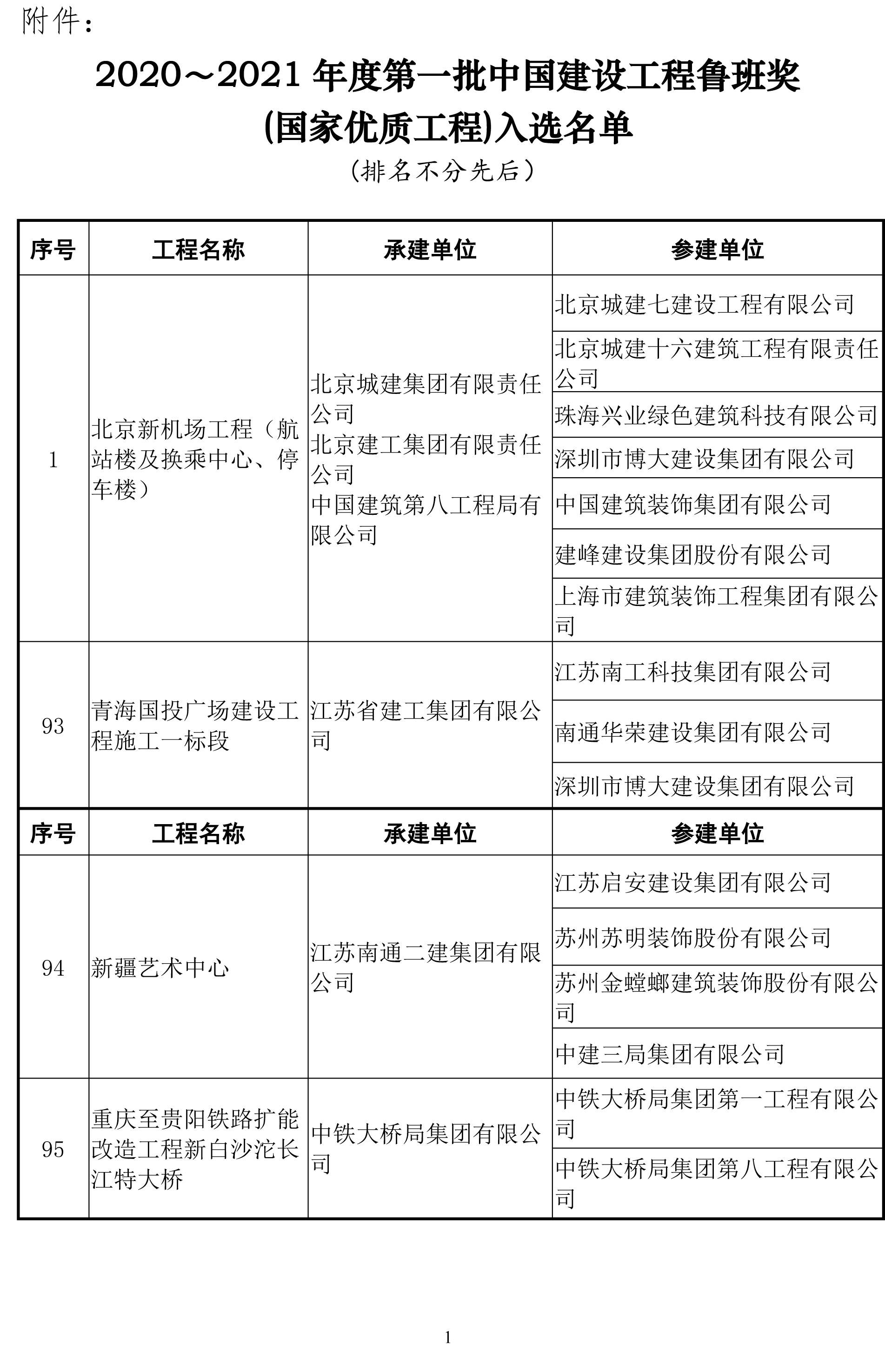 11月30日,根據(jù)中國建筑業(yè)協(xié)會的公示文件,2020~2021年度第一批中國建設工程魯班獎(國家優(yōu)質工程)申報、復查、評審、審定工作已結束,博大建設集團參建的北京大興國際機場、青海國投廣場兩個項目榮獲國家建筑行業(yè)工程質量最高榮譽——中國建設工程魯班獎(國家優(yōu)質工程)。