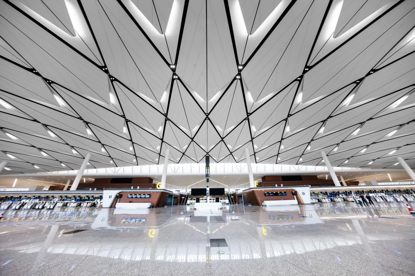 成都天府國(guó)際機(jī)場(chǎng)為4F級(jí)國(guó)際機(jī)場(chǎng)、是絲綢之路經(jīng)濟(jì)帶中等級(jí)最高的國(guó)際航空樞紐之一,中國(guó)首個(gè)“手拉手式”航站樓,總面積71萬(wàn)㎡,每座航站樓有3萬(wàn)㎡的羽毛狀吊頂與“太陽(yáng)神鳥(niǎo)”的整體造型呼應(yīng) 。航站樓共設(shè)置83個(gè)廊橋機(jī)位,能夠滿(mǎn)足2025年2800萬(wàn)人次國(guó)內(nèi)旅客吞吐量和1200萬(wàn)人次國(guó)際旅客吞吐量的需求。預(yù)計(jì)本月開(kāi)通運(yùn)營(yíng)。