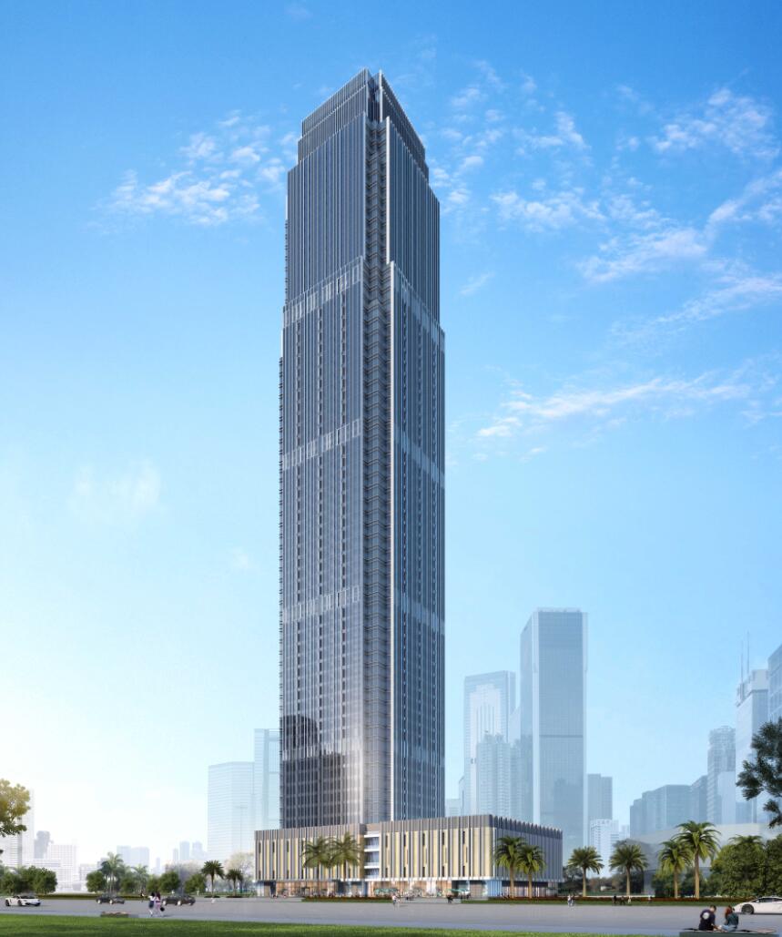 項(xiàng)目位于防城港市江山大道與金花茶大道交匯處,是一棟大型商業(yè)、辦公、酒店綜合體,總建筑面積超過17萬㎡,建筑高度達(dá)到271米,地上70層,是防城港市最高樓。
